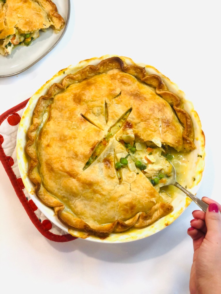 Chicken pot pie is an American classic that I have actually only had via Marie Callender’s frozen pot pie meal. It’s always been on my list of things to try making from scratch, and this cold NYC weekend was the perfect occasion to experiment. When I say from scratch I mean with a pre-made, frozen pie crust because to be honest it’s good enough! Of course I also had to make this a little bit healthier by cutting back on the butter and cream, but trust me this filling is still THICC. Semi guilt free chicken pot pie? Baiii Marie Callender.