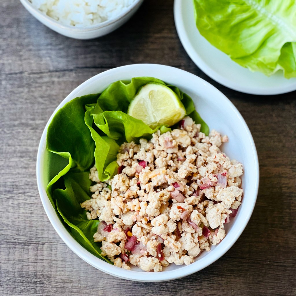 A lot of Thai food can be quite heavy and decadent, but this larb chicken salad is super light and refreshing. This is definitely not the most authentic recipe for Larb Gai because I could not find lemongrass, fresh red chilis, etc., but it’s close enough! You can serve this as an appetizer, or as a healthy meal with a side of jasmine rice. I prefer this dish at room temperature, but you can also have it chilled or slightly warm if you don’t want to wait for it to fully cool. Perfect for a quick weekday summer lunch!