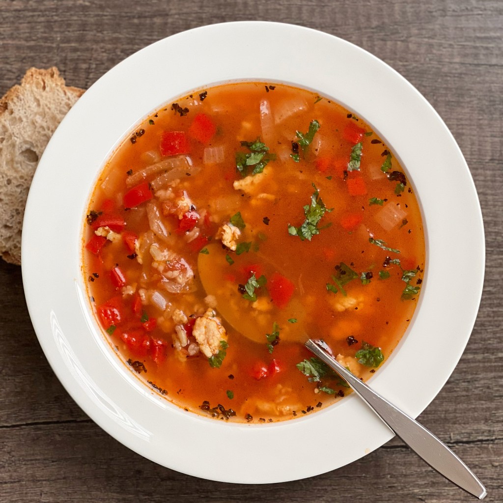 I love a good, overly stuffed pepper, but sometimes it seems like too much work to actually stuff and bake them in the oven. This soup is perfect because it incorporates all of the yummy parts of a stuffed pepper, but in just one giant pot. I chose to use crushed tomatoes because I personally don’t like the texture of canned diced tomatoes, but use whatever you prefer. This is a super healthy and hearty meal that is perfect for the winter!
