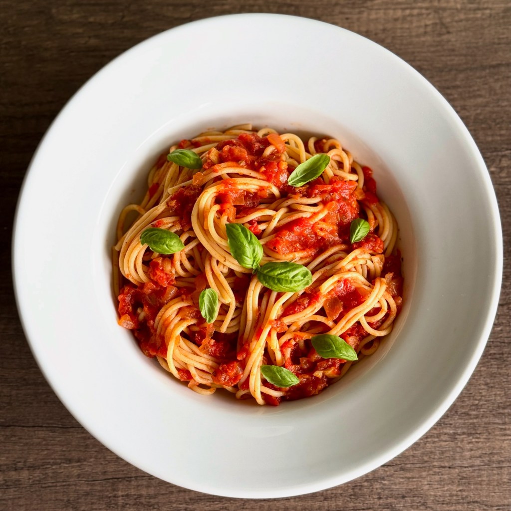 Even though there are endless pasta options, my favorite Italian dish will always be spaghetti pomodoro. I am a huge fan of tomatoes in general, and this simple combination of canned whole tomatoes, tomato paste, and seasonings makes the best homemade tomato sauce. I chose to use canned whole tomatoes this time, but you can also use crushed tomatoes or passata depending on the texture that you prefer. I also prefer a slightly sweeter sauce, so I like to add in the tomato paste and sugar. I think it also helps get rid of the acidic and metallic taste that canned tomatoes have. The hardest part of this recipe is waiting for the sauce to slowly simmer on the stovetop.